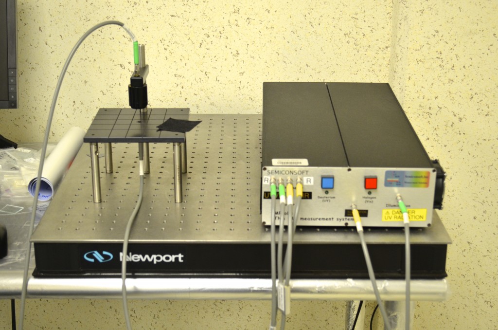 - Sistema de espectroscopía de reflexión y transmisión. Sistema de espectroscopía de fibra óptica UV-VIS-NIR, Marca: Semiconsoft, Modelo: M-Probe, rango espectral de 200-2200 nm, Software: TFCompanion-R, con control integrado y adquisición de datos para analizar películas delgadas.
